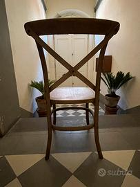 Set di 5 sedie cross vintage artigianali in legno, con anello in legno interno per rinforzarne la stabilità. Presentano segni di usura superficiale, facilmente carteggiabilli