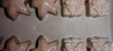 Vendo set di 5 stampi in silicone per cioccolatini, perfetti per preparazioni di cioccolato, praline o dolci.