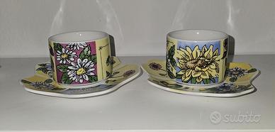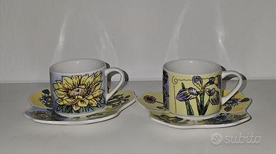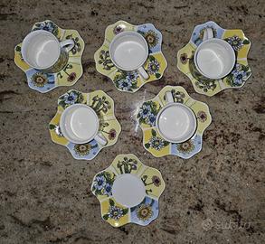 Vendo set di 5 tazzine da caffè + 5 piattini abbinati (+ un piattino senza tazzina)che risalgono agli anni '70 del 1900 decorati con fiori. I piattini hanno un design a forma di fiore dal fascino retrò. Il set è stato prodotto dalla regia manifattura (=konigliche manufaktur) di porcellane ALTENKIRCHEN in Baviera. Le condizioni ben visibili in foto sono buone.