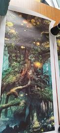 Rappresenta l'albero della vita in una foresta fantasy e magica.