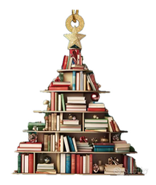 Piccoli alberi di Natale fatti di libri in acrilico 2D.