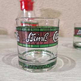 Set di 6 bicchieri Coca Cola + caraffa in stile Liberty, risalenti agli anni '80.