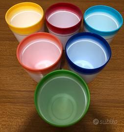 6 bicchieri in plastica nuovi Con bordo colorati ogni uno di un colore diverso