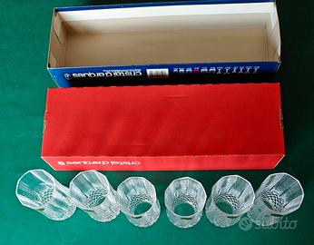 Set 6 bicchieri vintage in cristallo al piombo al 24%, nuovi, con il bollino ancora incollato e con la loro scatola originale in buone condizioni, prodotti in Francia negli anni ‘90 dalla prestigiosa linea Longchamp di Cristal d’Arques
