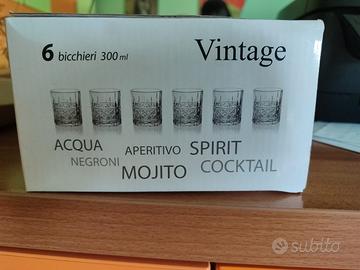 SET 6 PZ BICCHIERE VINTAGE WHISKY COCKTAIL 300 CL ELEGANTE TRASPARENTE ART.80483. Mai usato, confezione originale.