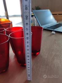 6 bicchieri rossi in vetro, altezza 15 cm circa