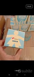 6 bicchieri vetro Bormioli UNICEF anni 90 rari da collezione colore celeste completi di scatola originale