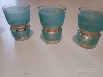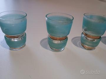 6 bicchierini da rosolio, con perfilo in oro e colorazione celeste.