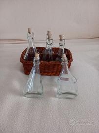 6 piccole bottiglie mai utilizzate con cestino in vimini. Per ogni chiarimento contattatemi