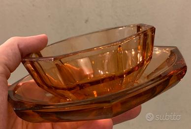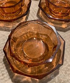 Un set da dessert o da macedonia in vetro color ambra (o color miele), realizzati in pieno stile Art Déco.