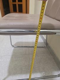 Struttura in acciaio cromato lucido e seduta imbottita in eco-pelle color tortora, comoda e facile da pulire.