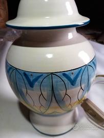 6 lampade vietri nuove complete di cavo interruttore e portalampade, tranne una, ma senza cappello e tutte con disegni e colori diversi, altezza di cm 30 il diametro alla base è di cm 13, tutte e 6 euro 100 oppure euro 20 l'una