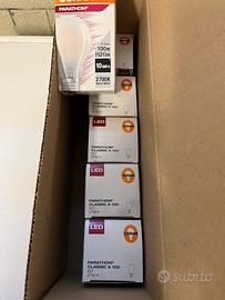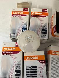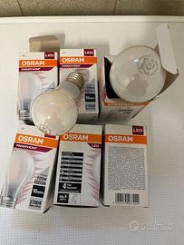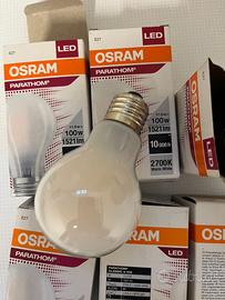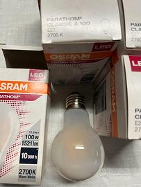 OSRAM PRCA1008227SG N.6 Lampadine a led modello PRCA100827SG9 di Osram Caratteristiche Tecniche •Forma: Goccia classica (A60). •Attacco: E27 (vite grande standard). •Tecnologia: LED a filamento (estetica simile alle lampadine tradizionali, con i "fili" luminosi visibili all'interno del vetro). •Finitura Vetro: Chiaro (Clear). Performance Luminose •Potenza: Circa 11W (equivalente a una vecchia lampadina da 100W). •Luminosità: 1521 Lumen (un flusso luminoso molto potente, ideale per illuminare stanze intere). •Colore Luce: 2700K (Bianco Caldo / Warm White). Crea un'atmosfera accogliente e domestica, tipica delle lampade alogene o a incandescenza. •Indice di Resa Cromatica (CRI): ≥80 (garantisce che i colori degli oggetti appaiano naturali). Efficienza e Durata •Risparmio Energetico: Consuma circa l'80-90% in meno rispetto a una lampadina tradizionale di pari luminosità. •Durata Nominale: Circa 15.000 ore. •Cicli di Accensione: Resiste a oltre 100.000 cicli di on/off. Punti di Forza •Efficienza Immediata: Raggiunge il 100% della luminosità istantaneamente, senza tempi di riscaldamento. •Design: Il vetro trasparente e i filamenti LED la rendono perfetta per lampadari a vista o portalampada minimalisti dove la lampadina è parte dell'arredo. •Sostenibilità: Priva di mercurio e a basso impatto ambientale grazie ai ridotti consumi. Nuove, nel loro imballo originale Vendo a 15 euro Pagamento e spedizione con portale Garantisco massima serietà