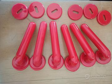 vendo n. 6 maniglie per porta in plastica rossa, munite di perni per il montaggio. prezzo cadauna 8 euro