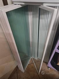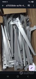 27 vetri con cornice in legno 54 staffe in acciaio 12 ristelli in legno con bacchetta in acciaio.