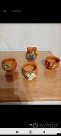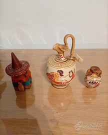 6 pezzi di oggettistica per arredamento. 1 vaso della Thun 30 euro 1 oggetto in vetroresina arrotolato 50 euro 1 un mazzolino di tulipani 10 euro 1 tris di oggetti egiziani 30 euro 1 set di brocche di terracotta 30 euro 1 tartarughina in ceramica 10 euro . tutto in blocco 130 euro