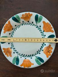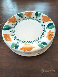 6 piatti da dessert Richard Ginori Mondovì dipinti a mano con il disegno di fiori e foglie in giallo e verde. Misurano 20 cm di diametro.