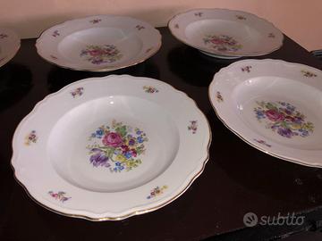 6 Piatti Ceramica Fondi Nuovi Epiag D.F. Chechoslovakia Vintage decorati con fiori e bordo dorato diametro cm 23,7 ? 62,00