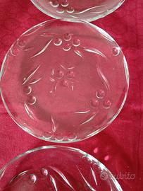 Vendo 6 bellissimi piattini in vetro lavorato in perfette condizioni. Decorazione floreale. Diametro 19 cm. Consegna a mano in Valle d'Aosta oppure spedisco