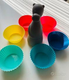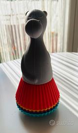 Simpaticissimo oggetto di design firmato Bialetti. Si tratta di un piccolo due pezzi che si uniscono con un magnete. La gonnellina è formata da sei pirottine in silicone colorato. Un oggetto unico e simpaticissimo.