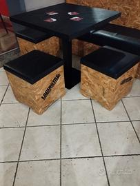 Vendo 6 pouf in legno con seduta nera, cuscino in ecopelle. Brandizzate Lagunitas Misure 40x40cm altezza seduta 45 cm