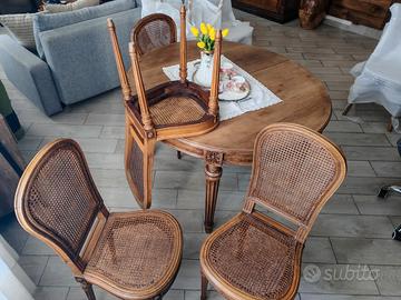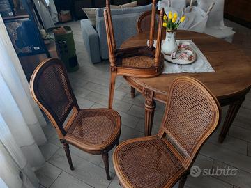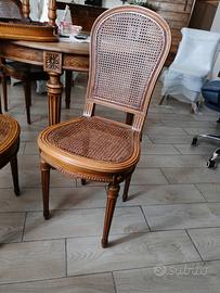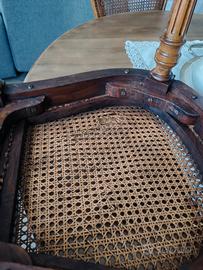 6 sedie in legno intarsiato e paglia viennese. 4 buone con normali segni di usura , 2 con piccoli danni all'impagliato che necessita riparazione. le sedie sono antiche e valgono molto di più del prezzo richiesto .