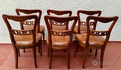 Vendo sei sedie in stile Luigi Filippo, realizzate da falegnameria artigianale negli anni Ottanta del Novecento.