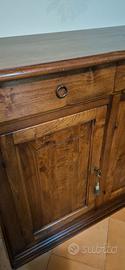 Vendo mobili in legno scuro per sala da pranzo: 6 sedie con seduta con cuscini viola foderati, credenza e vetrina, costo totale 700 euro. Misure credenza: profondità 51 cm, larghezza 213 cm, altezza 106 cm. Misure vetrina: profondità 33 cm, larghezza 103 cm, altezza 185 cm. Ritiro a carico dell'acquirente in luogo privo di scale, per il trasporto c'è solo una piccola rampa in salita da percorrere.