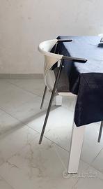 6 sedie da cucina / sala in plastica e ferro in buone condizioni, colore bianco. Il modello in questione ha i braccioli in modo da agganciarsi al tavolo e favorire la pulizia a terra