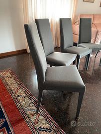 6 sedie da cucina praticamente nuove con rivestimento in tessuto idrorepellente ( trattato con prodotti specifici) color grigio scuro.