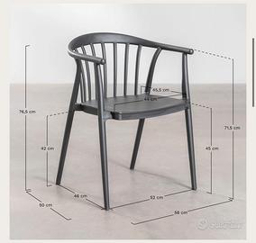Come nuove, mai usate per incompatibilita con tavolo. Con l'arrivo del bel tempo cerchiamo di sfruttare al massimo le aree esterne della nostra casa. Per questo, è imprescindibile avere una bella sala da pranzo da giardino che ci permetta di godere di lunghe e piacevoli serate insieme ai nostri cari. Il Set di 6 sedie da giardino impilabili con braccioli in polipropilene è il complemento ideale per iniziare a creare questo angolo di relax. Sono realizzate interamente in polipropilene di alta qualità, un materiale resistente e durevole in grado di offrirti un pezzo semplice che ti accompagnerà per molto tempo. Uno dei motivi per cui queste sedie diventeranno il tuo fedele alleato è il loro carattere impilabile che ti permetterà di riporle in poco spazio. Sono dotate di piedini antiscivolo che ne assicurano l'equilibrio e proteggono le tue superfici. Con un design minimalista si integra perfettamente in diversi stili decorativi, apportando personalità e freschezza.