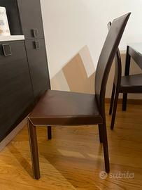 6 sedie in pelle marrone per tavolo da pranzo. Vendo per cambio arredamento, ma sono state usate poco, quinoa sono in ottimo stato. Il prezzo è complessivo e le vendo solo in blocco unico. Poco trattabile.