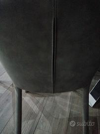 6 Sedie design Domitalia in pelle scamosciata, alcantara, colore fango, rifiniture di design, nuovissime, mai utilizzate per seduta, valore commerciale 1800, vendo a 1000 euro. Foto della parte sottostante in fodera nera e foto del retro della sedia. Ritiro su Cosenza