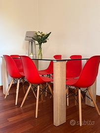 Vendo 6 sedie moderne color rosso, in stile design Eames, perfette per cucina, sala da pranzo o ufficio. Le sedie sono in ottime condizioni, solide e comode, con struttura in legno e rinforzi in metallo. Seduta ergonomica in plastica resistente, facile da pulire. Design moderno e accattivante, ideale per dare un tocco di colore all’ambiente. Dettagli: Quantità: 6 sedie Colore: rosso Struttura: gambe in legno con supporti in metallo Condizioni: pari al nuovo / ottime Prezzo: 28 € ciascuna Disponibile per ritiro a mano. Per qualsiasi informazione o foto aggiuntive, contattami!