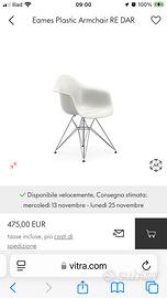 6 sedie Eames Vitra originali, in perfette condizioni. Elementi di arredo di design. Scocca in plastica bianca, struttura in acciaio. Originali Vitra (listino attuale 475 euro l’una). Anno di produzione 2008. Non vendo separatamente. Costi di spedizione non inclusi. Preferibile consegna a mano per evitare costi di spedizione ed imballaggio