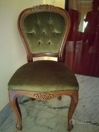 NOTA BENE: Posso anche spedire (Chiedere i COSTI) Sedie di ottima qualità. Telaio in legno pregiato e rivestimento in velluto verde (Totale 6)
