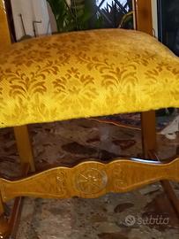 6 sedie vintage, anni 70, legno solidissimo e velluto giallo, solo alcune sedute sono da rimbottire