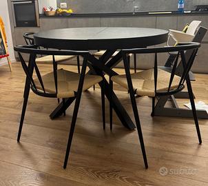 Sedie in metallo nero con seduta in corda naturale intrecciata