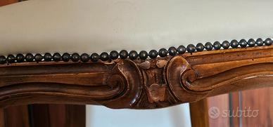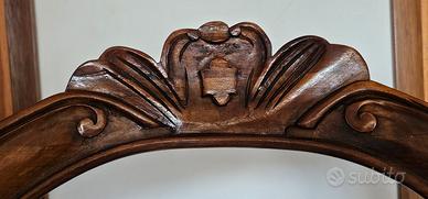 in foto se ne vedono 4 ma sono 6, tutte in medesime condizioni legno massello con gambe mosse, schienale sagomato con intaglio decorativo