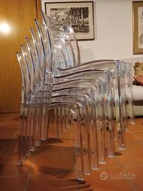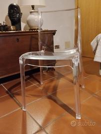 6 sedie in policarbonato in ottimo stato 41 cm x 40 cm altezza seduta 47 cm. Impilabili. Ottime per cucina.
