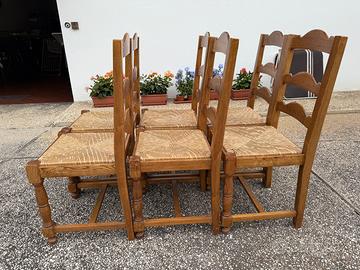 Vendo 6 sedie in legno massello di rovere, robuste e di qualità artigianale, con seduta in paglia intrecciata. Ideali per arredare cucina, sala da pranzo o taverna con uno stile classico e accogliente.