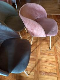 Vendo sei sedie, tre di colore grigio due di colore verde e una rosa (più regalo, un’altra di colore rosa leggermente danneggiata)
