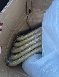 Vendo 6 sedie di velluto color senape, con gambe in metallo nere. Come si evince in foto, sono nuove, mai montate. Il motivo è che mia madre me le ha regalate anche lei. Il colore comunque, non è senape carico, ma più freddo. Ovviamente dipende anche da come é la luce. Nella mia cucina a volte sembrano senape più caldo, a volte più freddo. Ad esempio, fuori al balcone nello scatolo, sembrano quasi oro chiarissimo