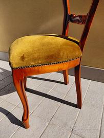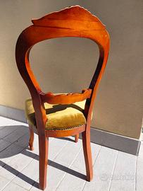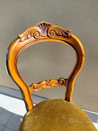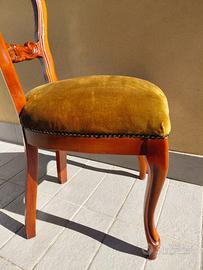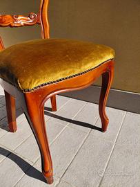 6 sedie di legno con intarsio classico e seduta in velluto