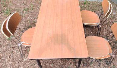 6 sedie anni 60 in acciaio e formica in buone condizioni con tavolo coordinato in regalo.