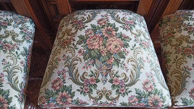 6 sedie intarsiate originali imbottite damascate. condizioni perfette. Consegna a mano presso Mirabello Sannitico o Campobasso. Leggermente trattabile. Valuto permuta con mobiletti, armadi, scrivanie, sedie moderne, piano cottura.