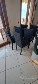 vendo n6 sedie per salotto con gambe in legno color noce scuro sedia in ecopelle. molto comode le sedie non sono rotte ma purtroppo in alcune parti il rivestimento si e crepato per questo come si vede dalle foto ho messo un coprisedia in tessuto elasticizzato che si abbina alla sedia vendo tutte in blocco a 70 euro