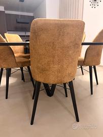 Vendesi 6 sedie poltroncine per soggiorno, eleganti e comode. Colore giallo senape, tessuto morbido al tatto e resistente, seduta e schienale morbidi, piedi in legno nero e struttura in metallo. Condizioni pari al nuovo, solo un anno di vita