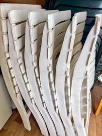 Vendo 4 sedie pieghevoli in plastica, pratiche e leggere, tutte funzionanti. Ideali per chi cerca una soluzione economica per evnti, giardino, feste o uso occasionale. Eventualmente si possono riverniciare per un tocco di colore o per adattarle al proprio stile. Vendo in blocco tutte a 20 €