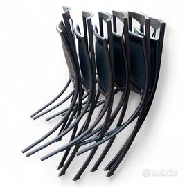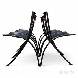 Gruppo di 6 sedie pieghevoli mod. Bella in acciaio verniciato nero opaco con sedili in cuoio rigenerato.